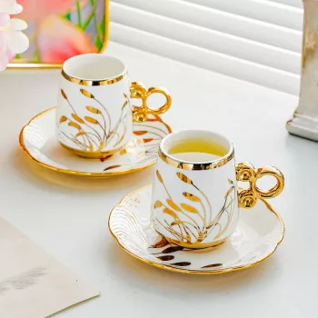 Elegant European Ceramic Coffee Cup & Saucer Set – Gold Trimmed Floral Design